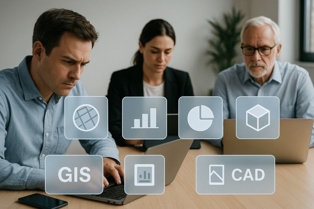GIS systems, market data, CAD software, rendering tools. Every workflow isolated, no end-to-end solution.